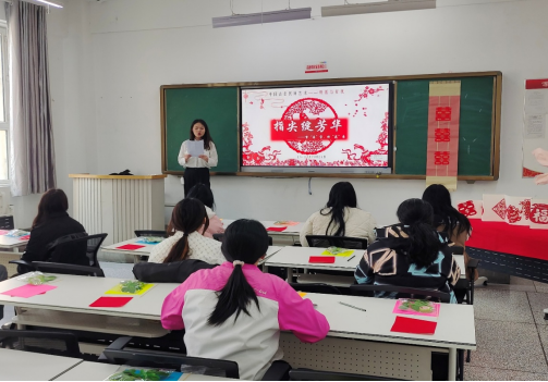 “纸上春秋,刀下乾坤。”纸艺社指导教师李艳老师手持红纸,仅用两刀便剪出一枚对称工整的“囍”字,师生们在折叠、剪刻的节奏中,一幅幅传统窗花逐渐成型。学生感慨:“看似简单的步骤,实则需要极致的耐心,这就是‘心手合一’的工匠精神吧!”