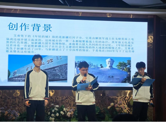 张意天、李东鑫、陈思远同学诵读并分析鉴赏诗歌《年轻的城》